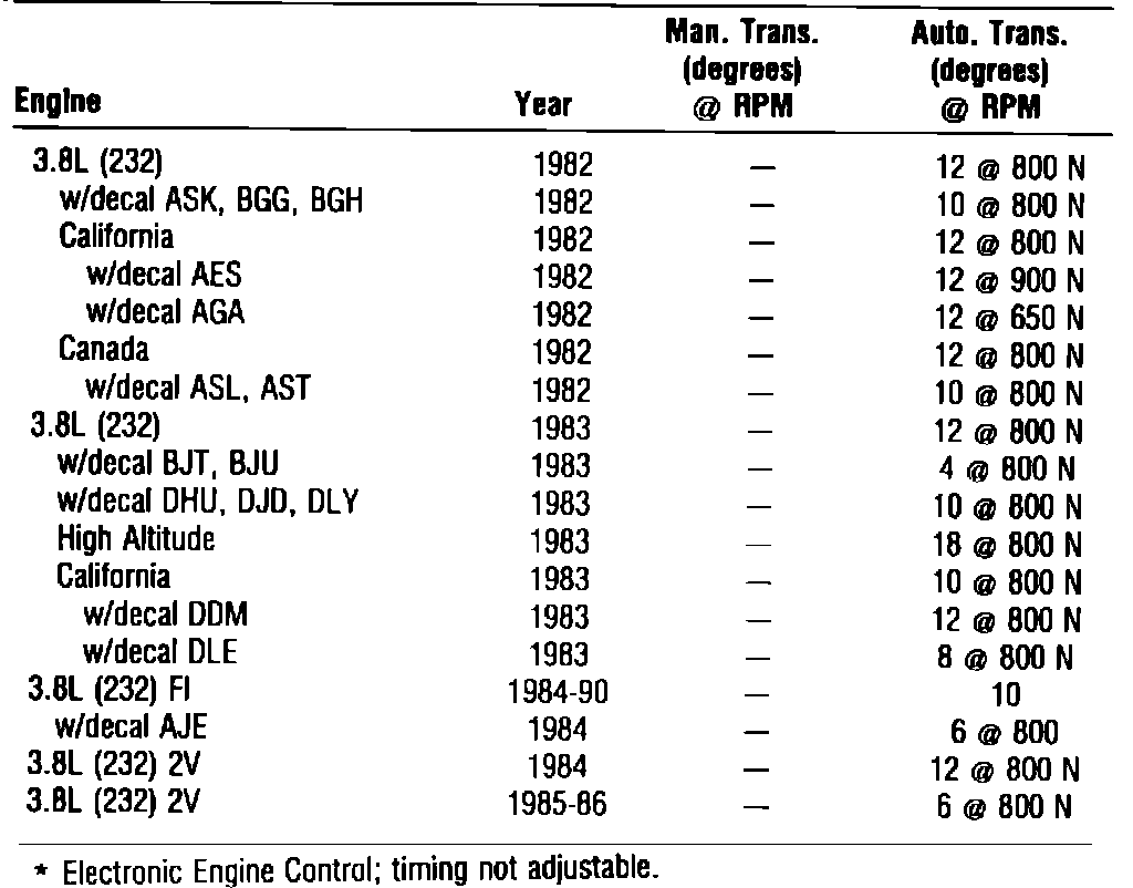 Ignition Timing: Specifications