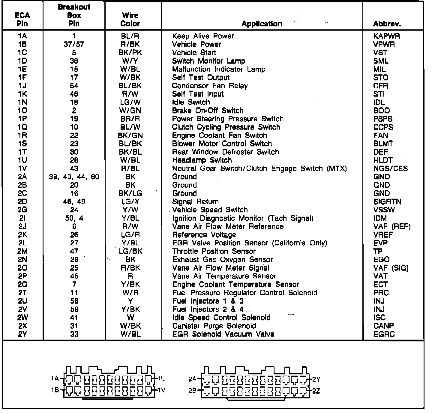 Electronic Control Assembly (ECA) Connector Pin Identification Non-Turbo (MTX):