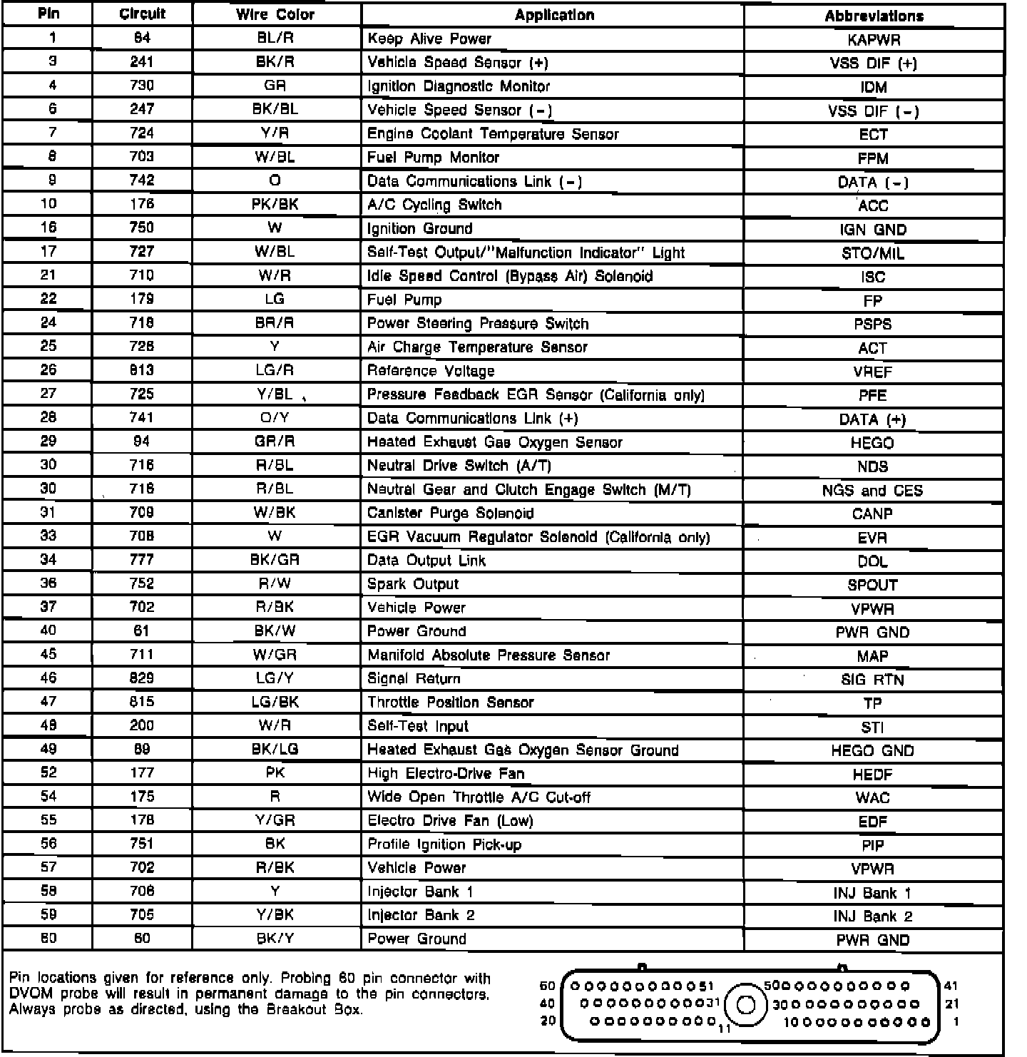 Electronic Control Assembly (ECA) Connector Pinout: