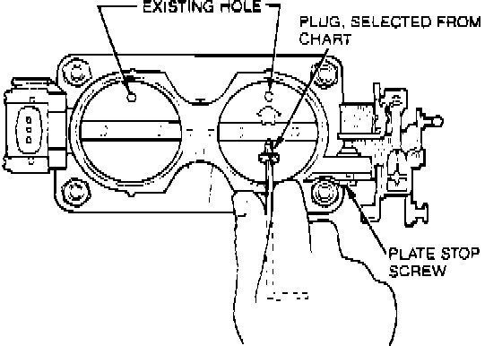 NOTE: A plug in the throttle plate orifice will decrease idle rpm. Where as an orifice without a plug will increase idle rpm. Orifice plugs and installation tools are available in service kit #FOPZ-9F652-A.