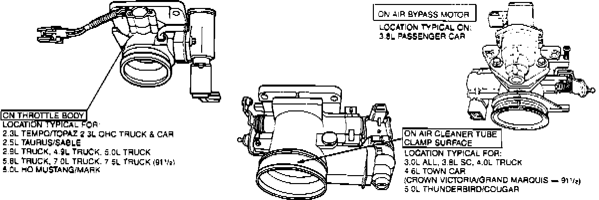 *** UPDATED BY TSB #9111B4, DATED 6/14/91NOTE: The curb and fast idle speeds are controlled by the Electronic Control Assembly (ECA) and the Idle Speed Control-Bypass Air (ISC-BPA) valve. The ISC-BPA is not adjustable. A large increase or decrease in closed plate airflow from the calibrated level will not allow this device to control the speed.