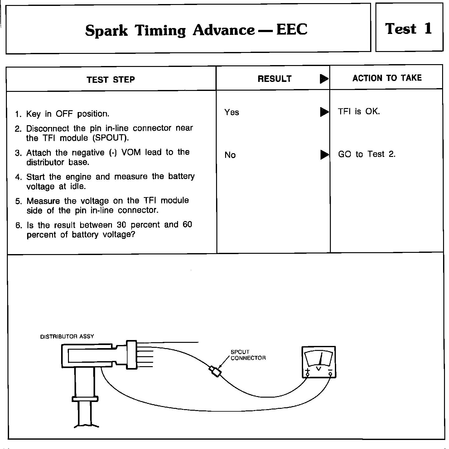 Home >> Ford >> 1991 >> Taurus L4-153 2.5L HSC >> Repair and Diagnosis >> Powertrain Management >> Ignition System >> Ignition Timing >> Testing and Inspection