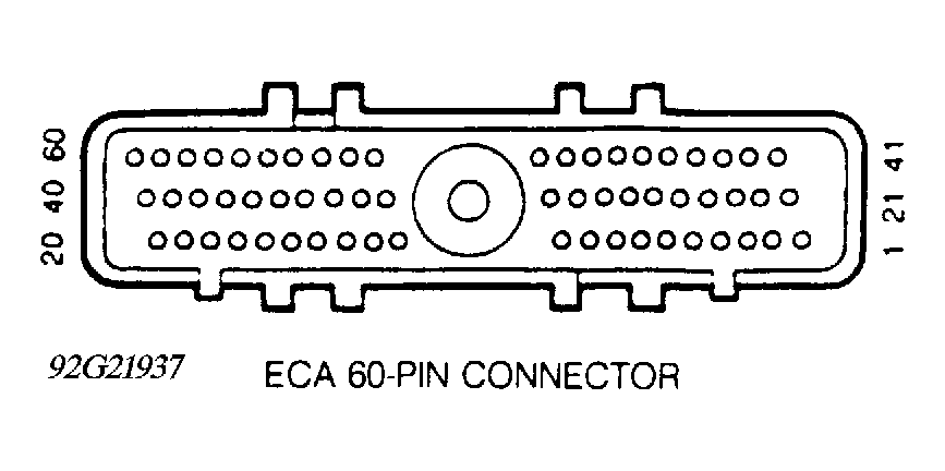 - Using a DVOM, check for continuity to ground on ECA terminals No. 20, 40 and 60. See Figure. Resistance should be zero ohms. If resistance is not zero ohms, repair open to ground.