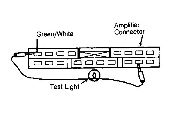 - Connect a 12 volt test light between Green/White wire terminal and open terminal of amplifier connector. See Fig 1 . Ensure ignition and cruise control are off. Turn ignition on.