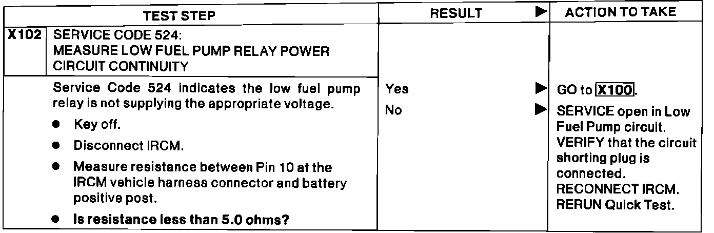 X102 - Service Code 524: Measure Low Fuel Pump Relay Continuity
