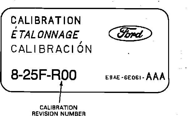 An Emission Calibration Label is attached to the left-hand side door or door post pillar. It identifies the engine year, calibration design, and design revision level. These numbers are used to identify service parts and engine specifications that make up the emission system designed for the vehicle.