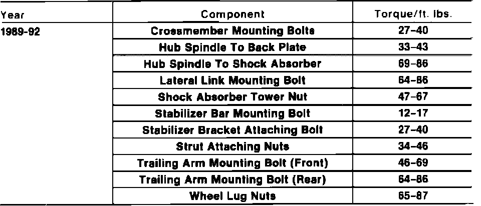 Tightening Specifications: