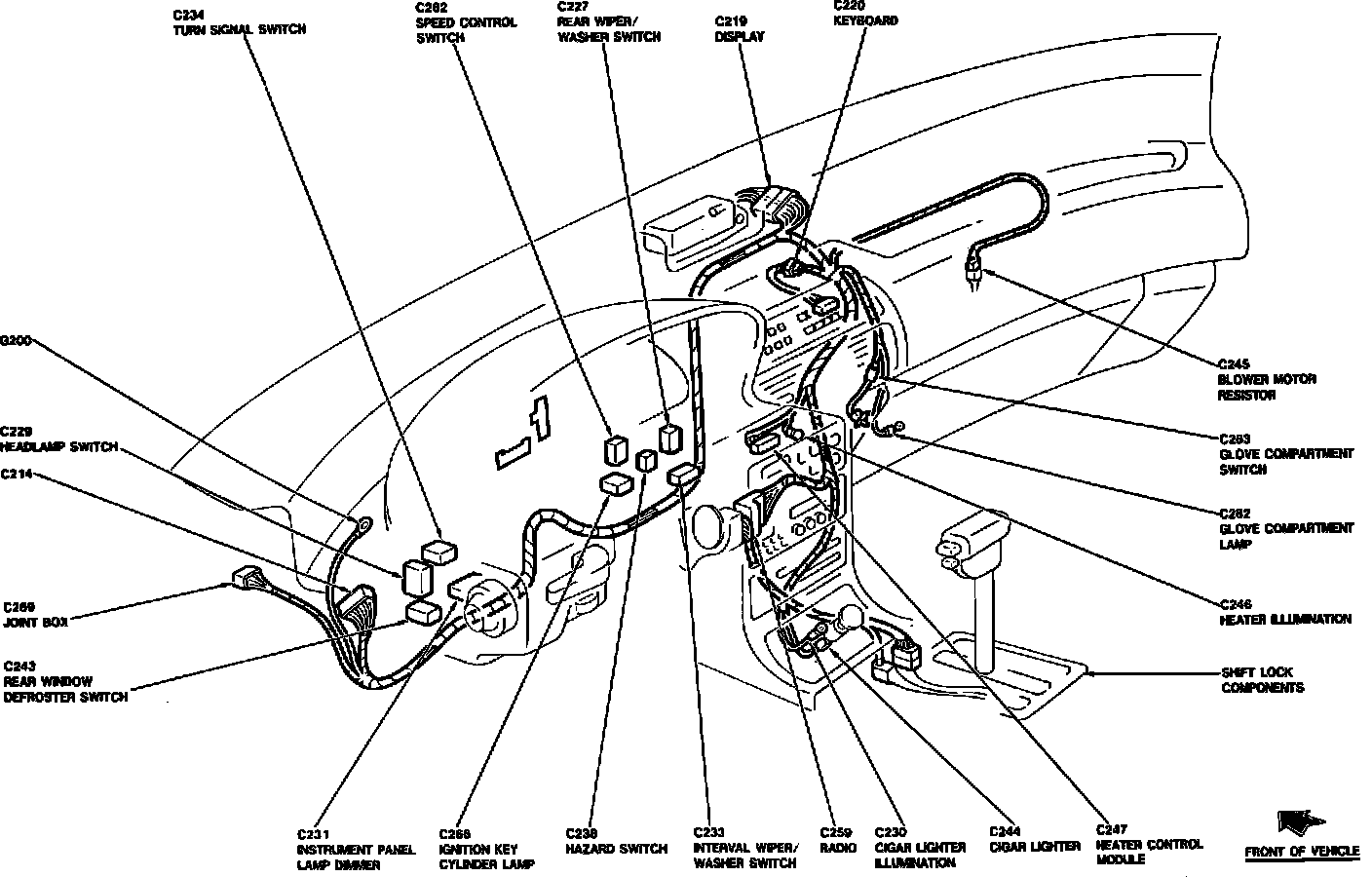 Instrument Panel Component Locations: