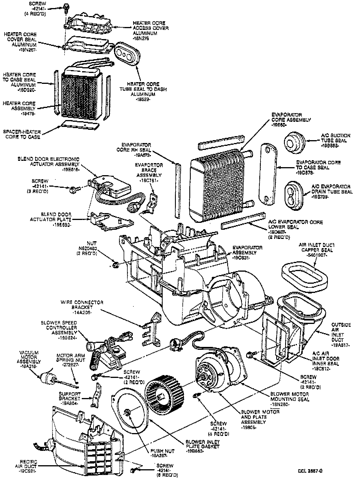 EATC Evaporator Case Assembly - Disassembled View:
