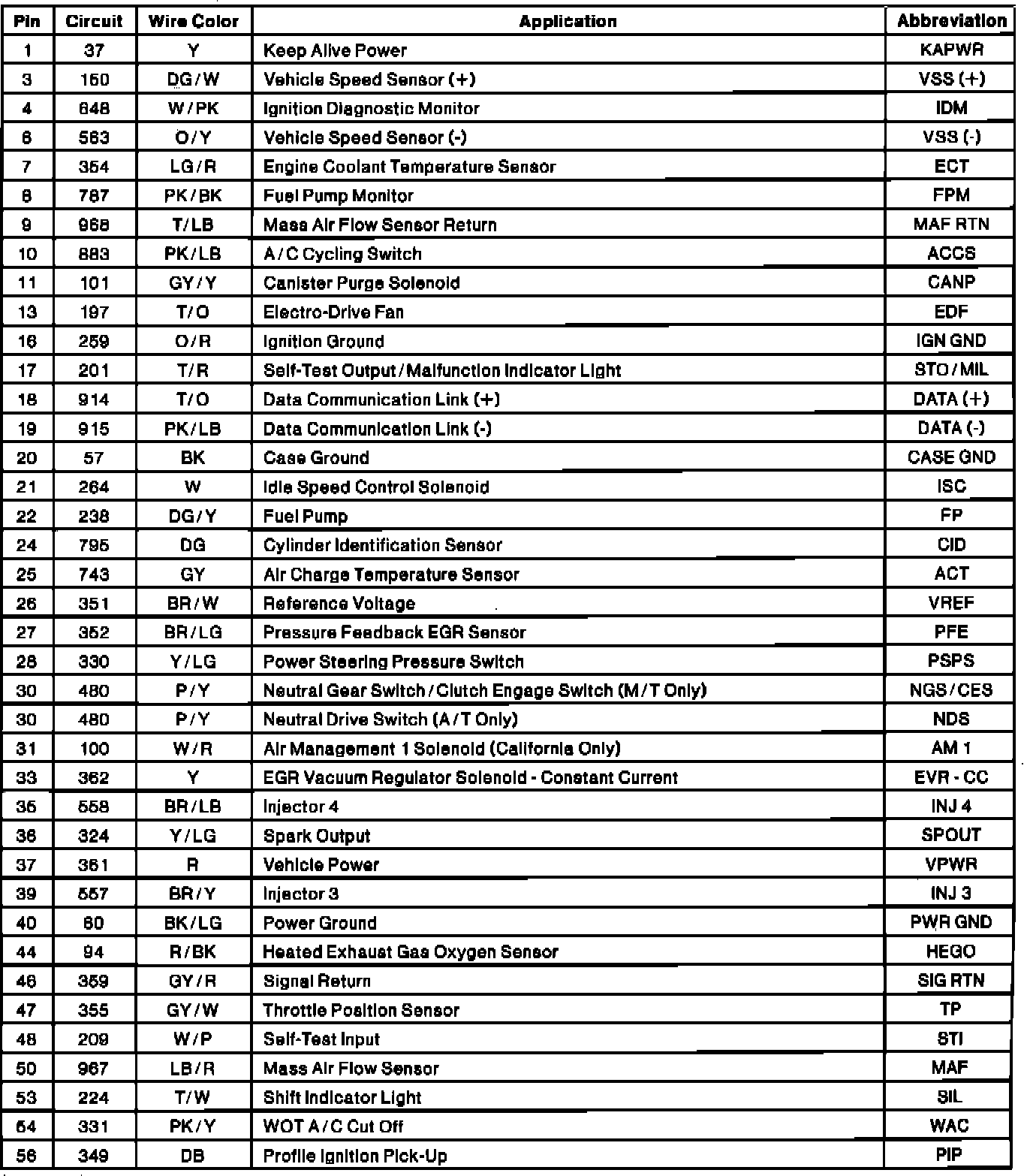 Electronic Engine Controller Connector Pinout: