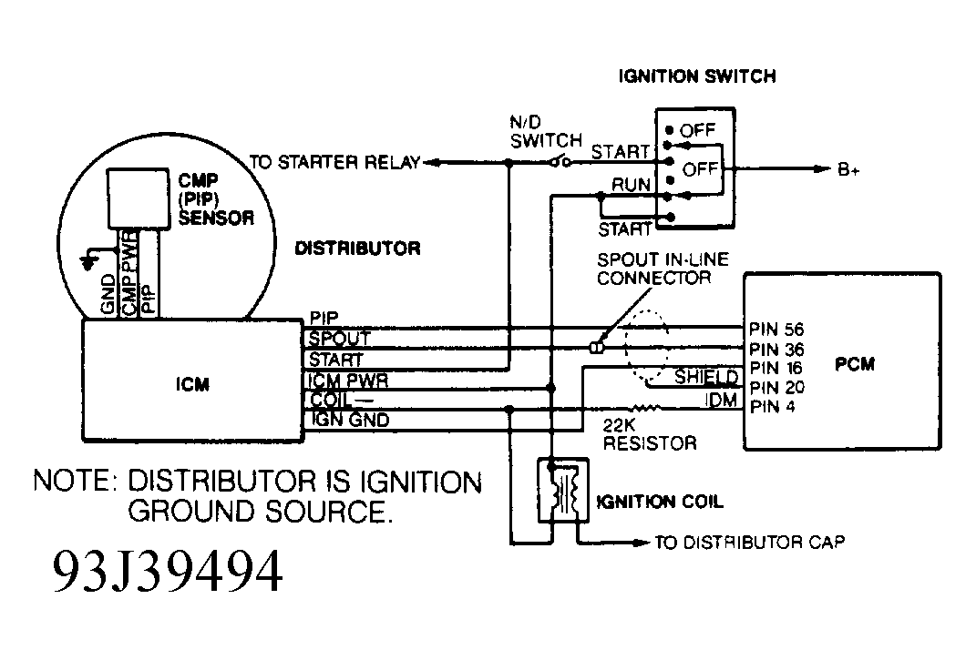 - If a consistent Blue spark is present at coil wire during cranking, inspect distributor cap and rotor for cracks or carbon tracking. Service as necessary and test spark output at spark plugs. If spark is present at spark plugs and engine will not start, go to appropriate TESTS W/O CODES