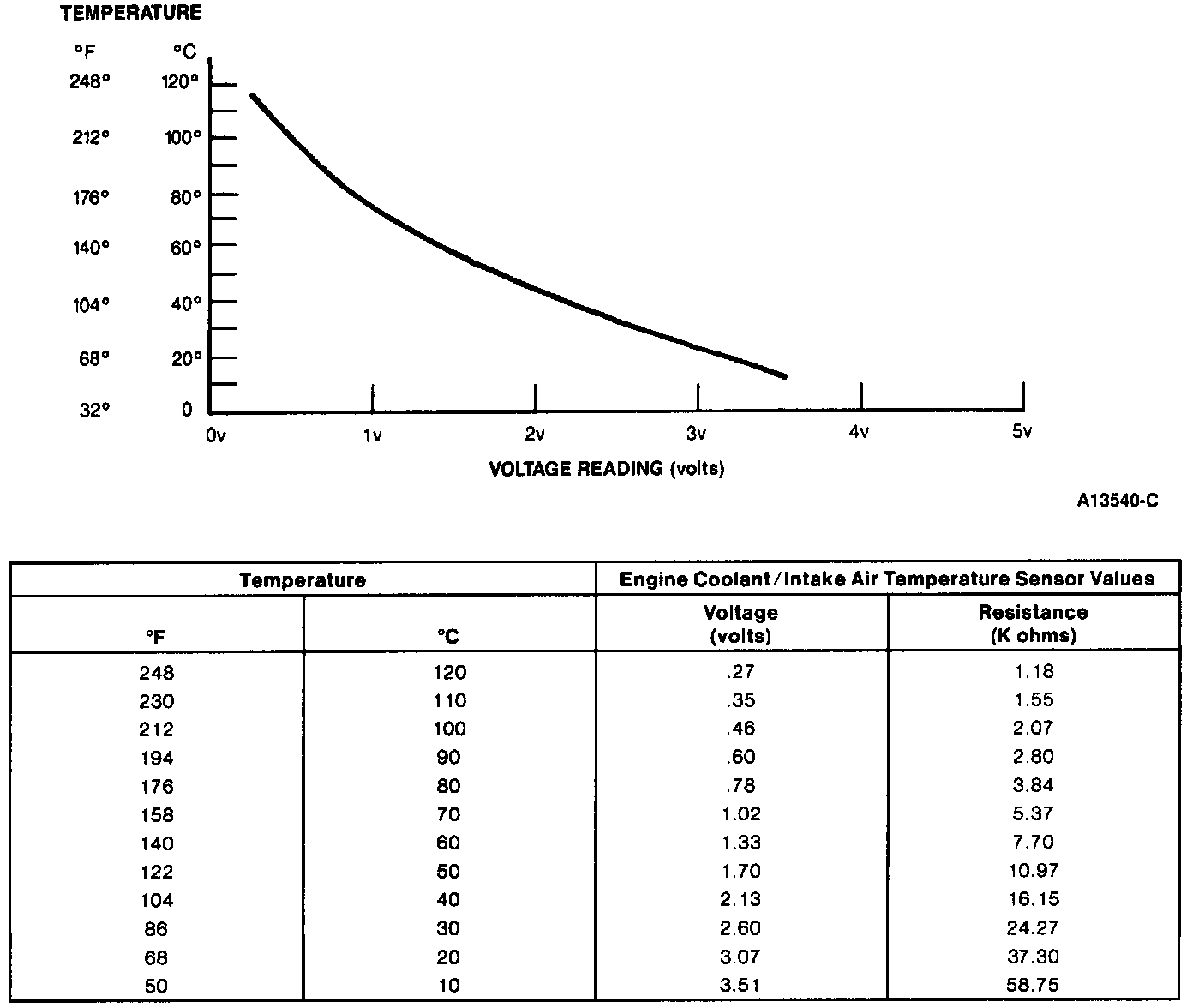 Engine Coolant/Intake Air Temperature Sensor Values: