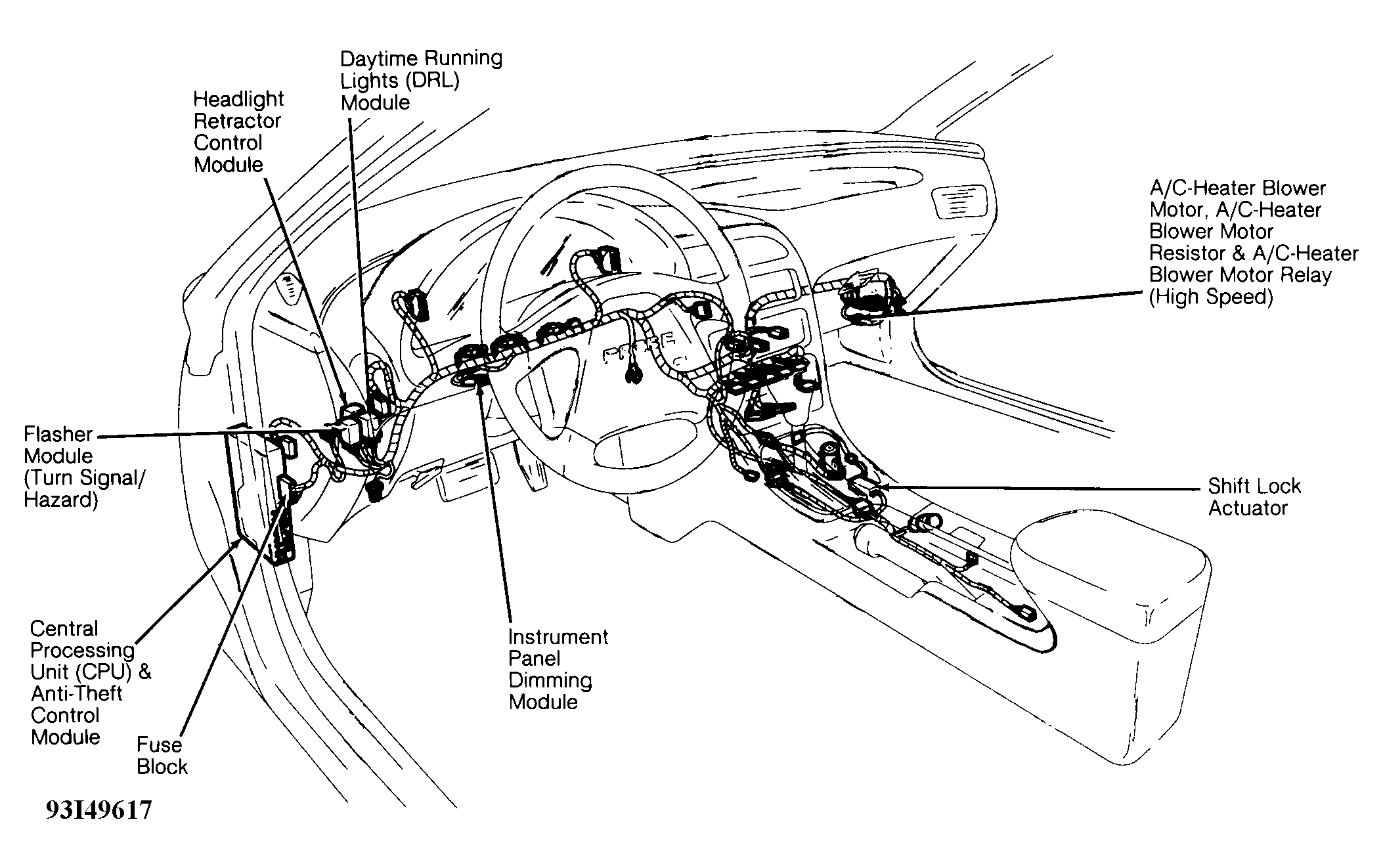 | Anti-Theft Control Module | Behind left side of dash, on CPU. See Figure . |
