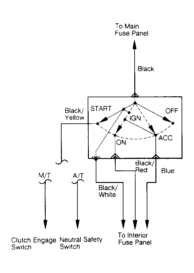 - Turn ignition switch to START position. Measure voltage on Black/Yellow wire. If voltage is less than 10 volts, ensure Black/Yellow wire is not shorted to ground. If Black/Yellow wire is okay, replace ignition switch.