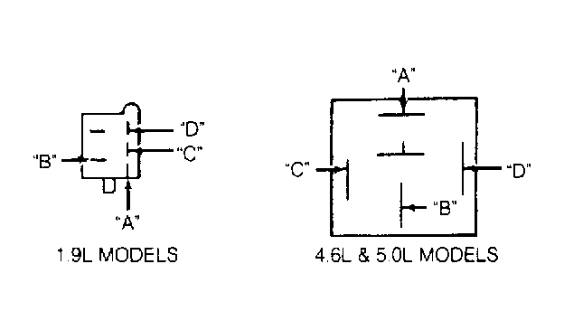 Remove relay from vehicle. Connect battery voltage to terminal "C". See Fig 1. Ground terminal "D". Measure resistance between terminals "A" and "B". Resistance should be less than one ohm with power applied and greater than 10 k/ohms with power removed.