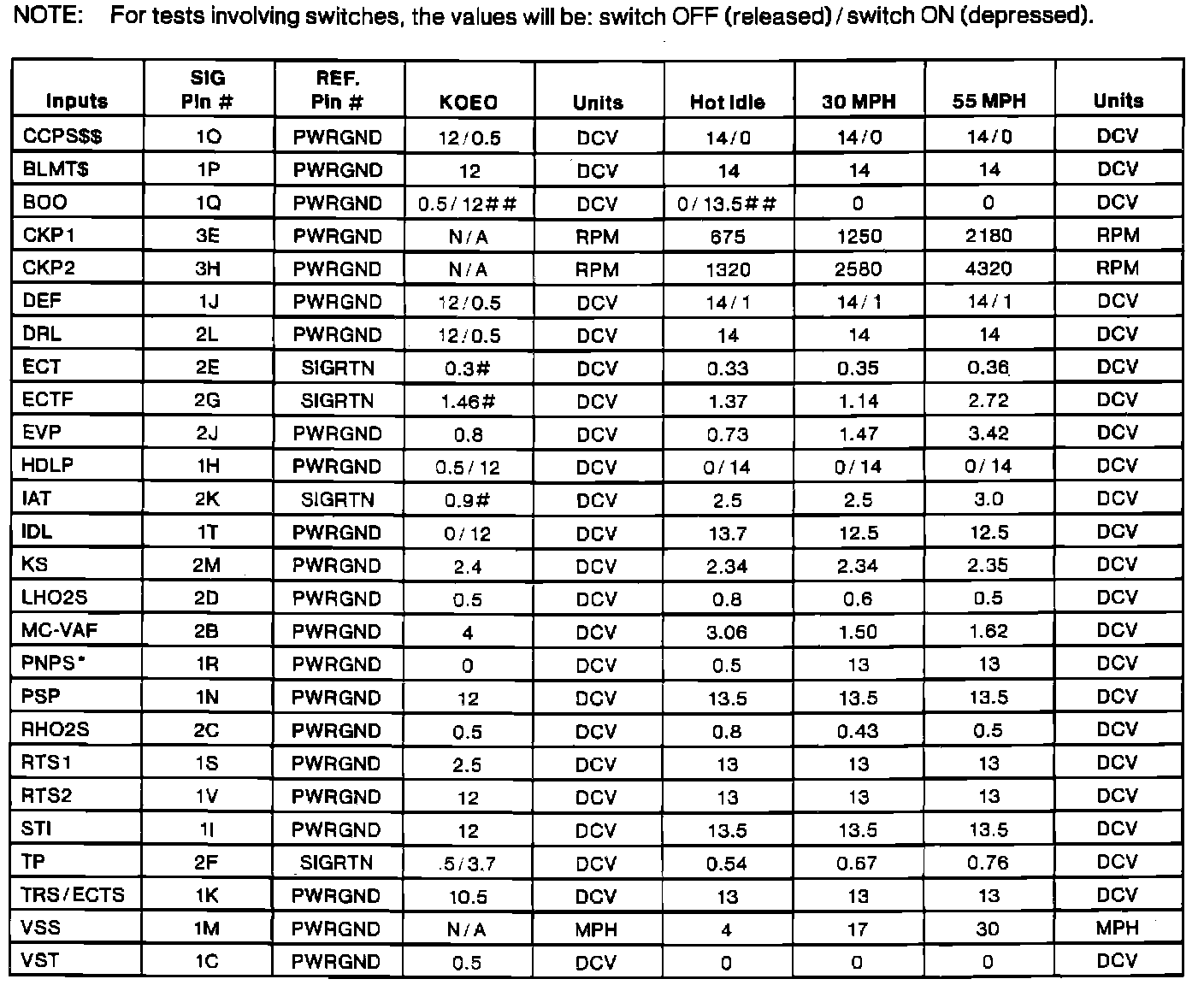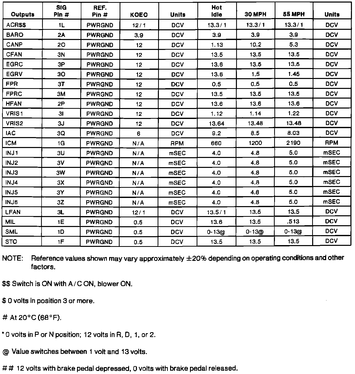 Normal Scan Data Values (Includes PID's)