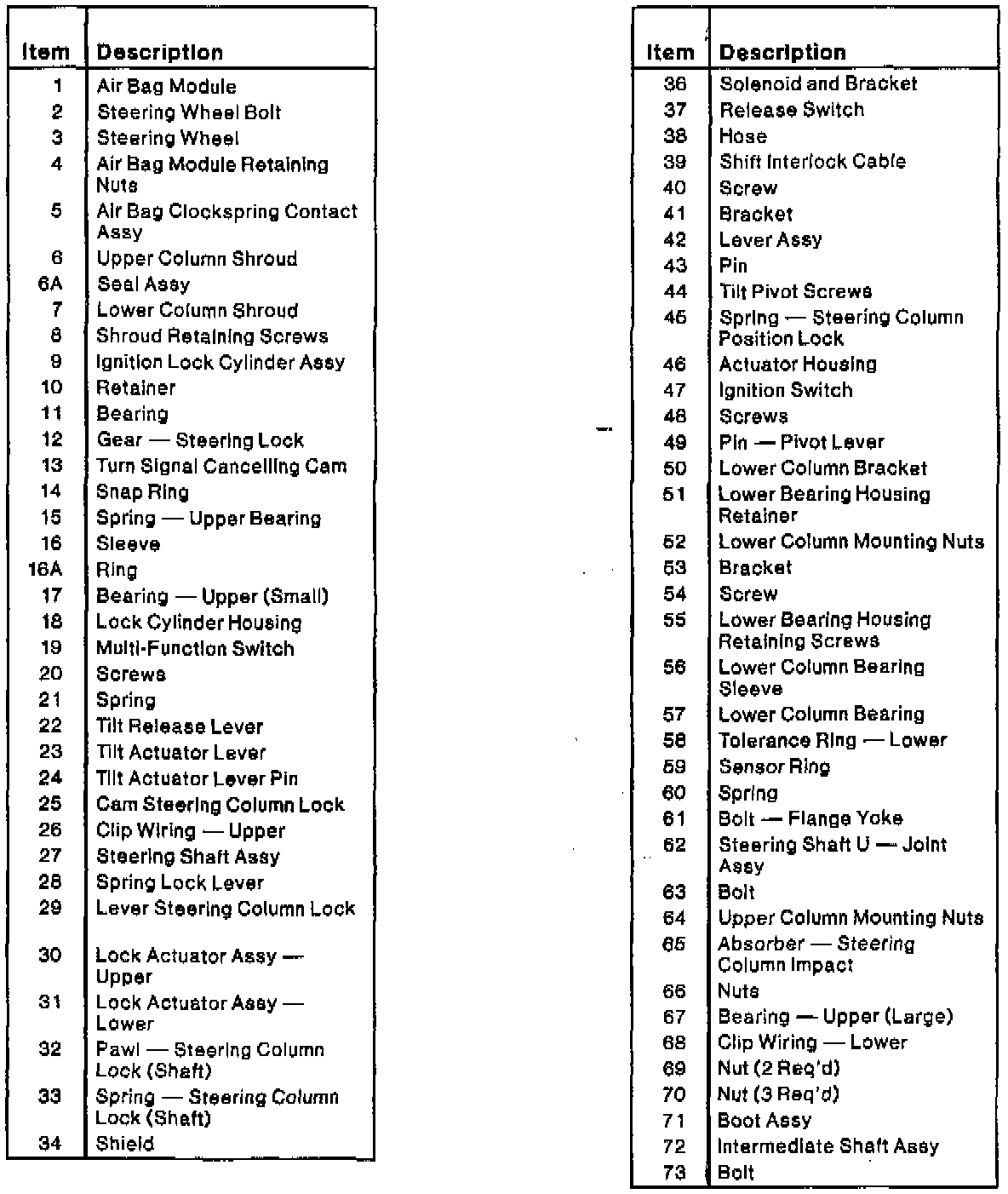 Fig. 6 Exploded View Of Steering Column W/column Shift: