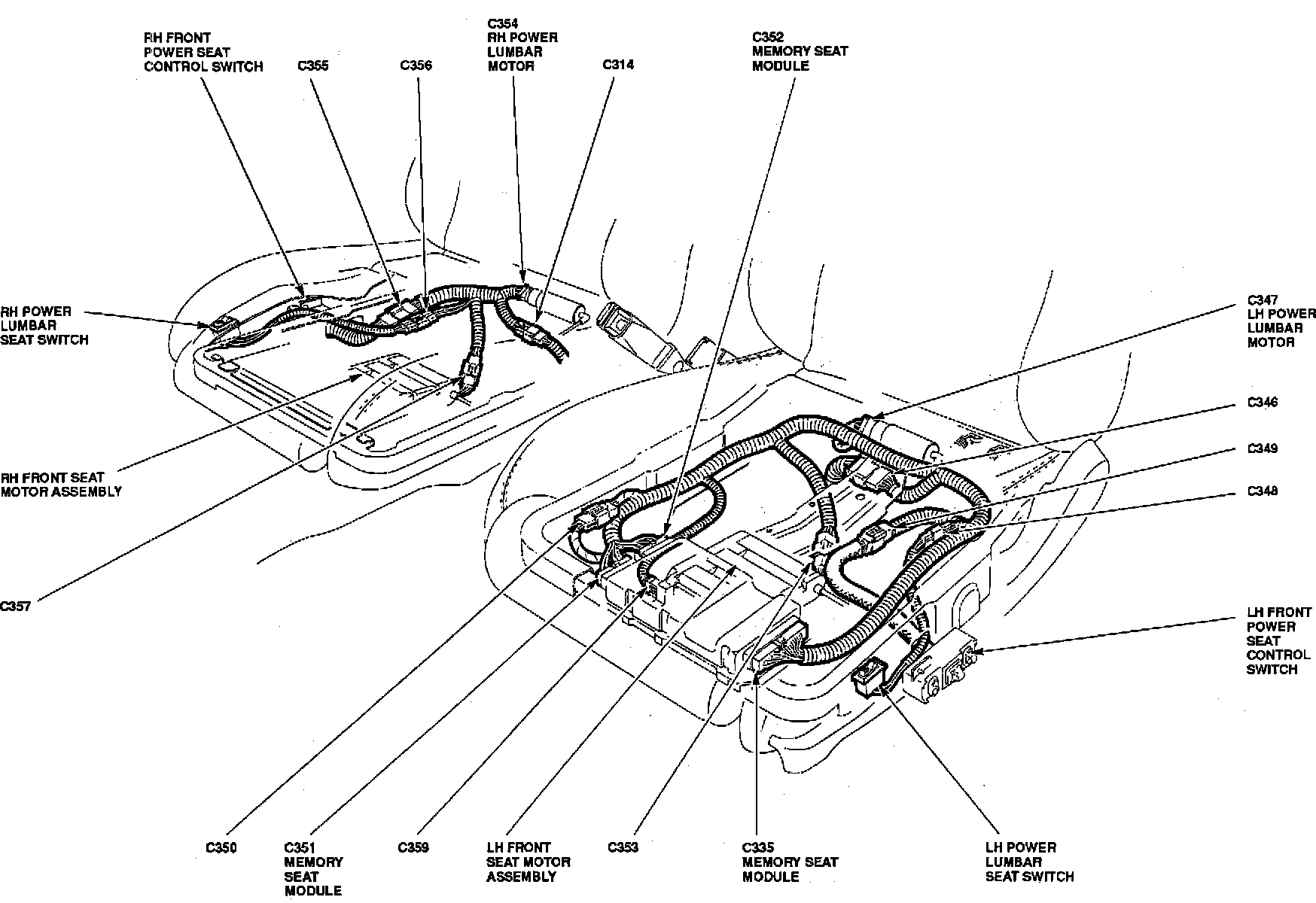 The Memory Seat Module is located below LH front seat.