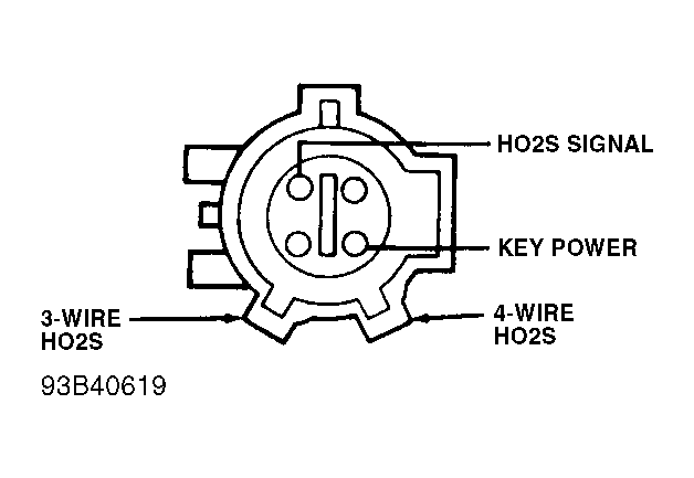 86) Check Left/Front HO2S Sensor For Short To Power  Turn ignition off. Disconnect left/front HO2S sensor. Measure resistance between HO2S SIGNAL terminal and KEY POWER terminal at HO2S sensor connector. See Fig 1. If resistance is 10,000 ohms or more, go to step 87). If resistance is less than 10,000 ohms, replace HO2S sensor and repeat QUICK TEST.