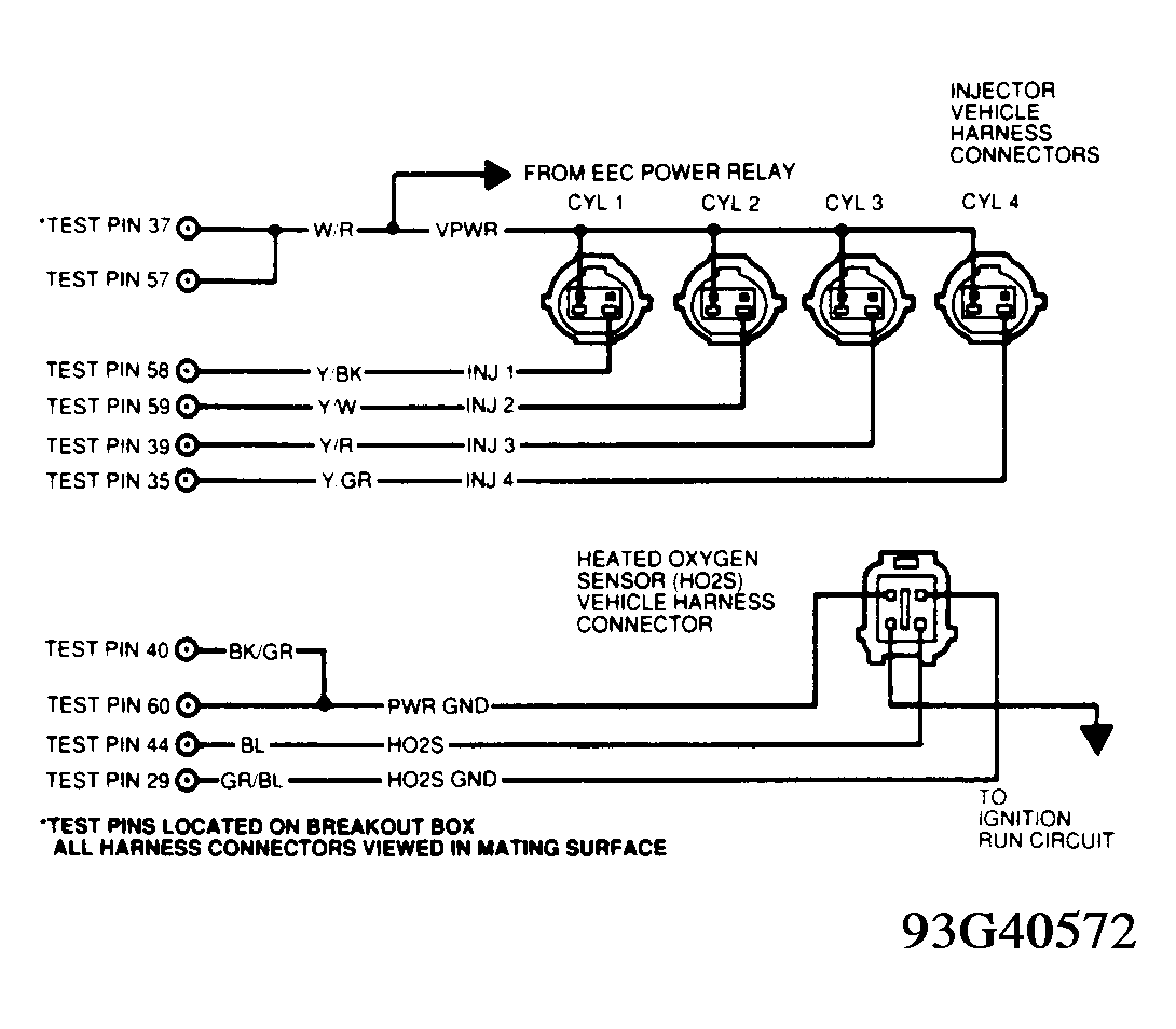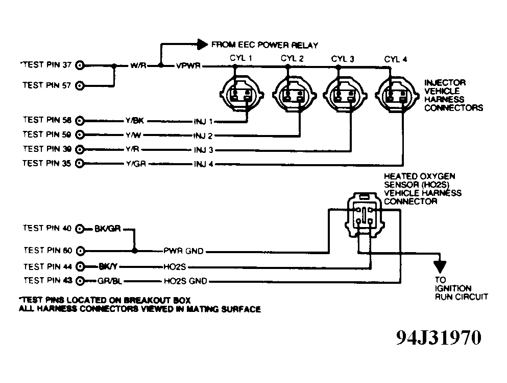 116) Check Left/Front HO2S Circuit For Short To Power  Turn ignition off. Disconnect 60-pin PCM connector. Inspect terminals, and repair if damaged. Install EEC-IV Breakout Box (T83L-50-EEC-IV), leaving PCM disconnected.