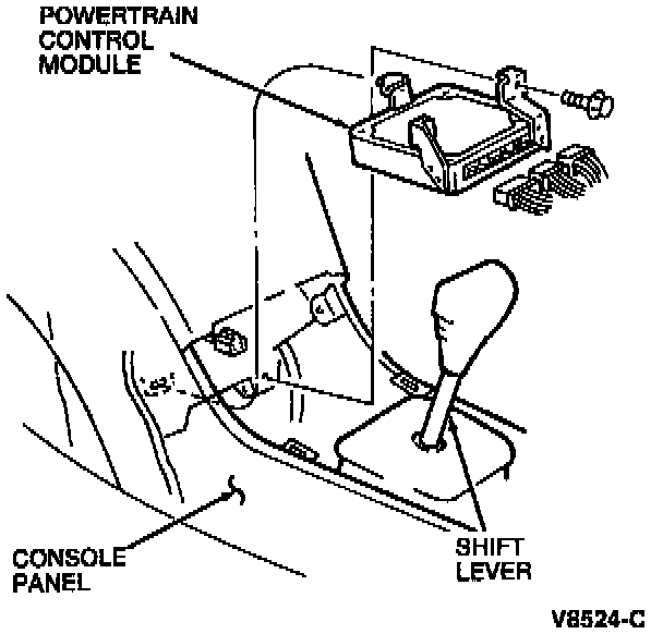 2. Remove the Powertrain Control Module (PCM) console panel access panel, located in front of the shift control selector lever and housing.