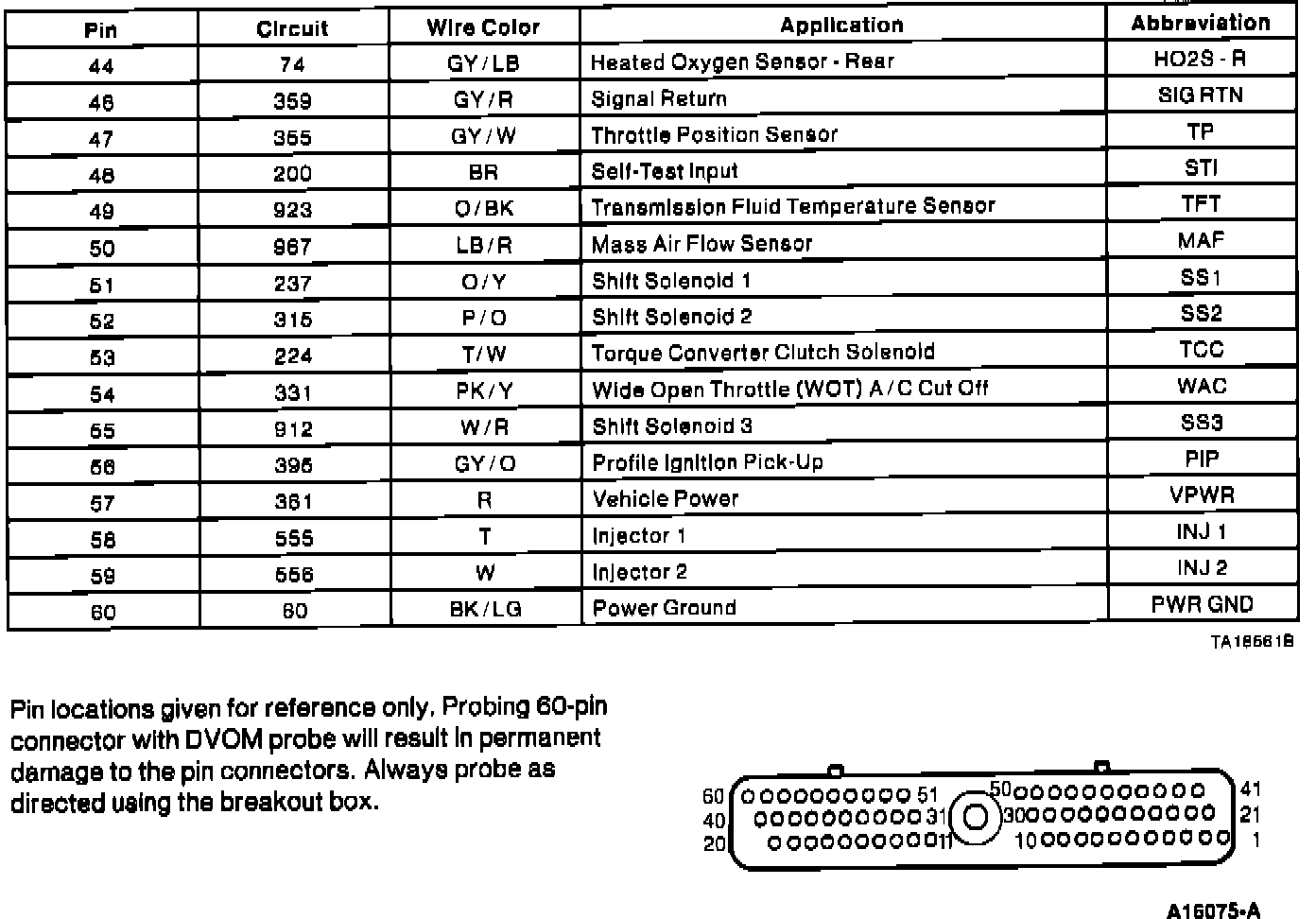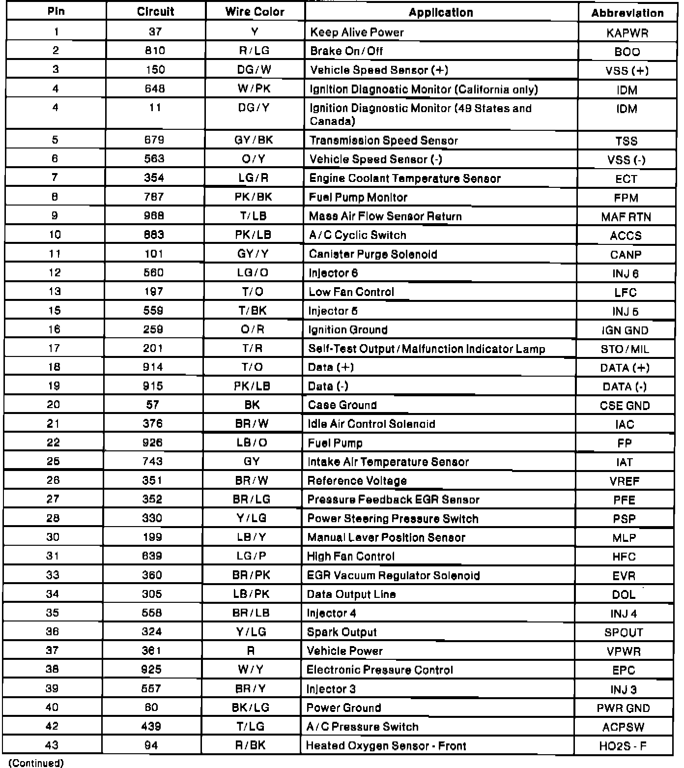 Powertrain Control Module (PCM) Connector Pin Usage: