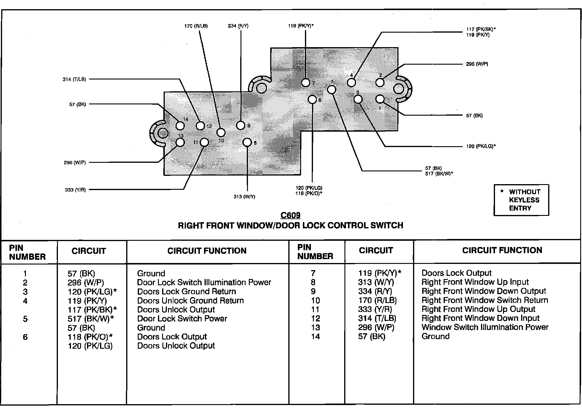 Right Front Window/Door Lock Control Switch:
