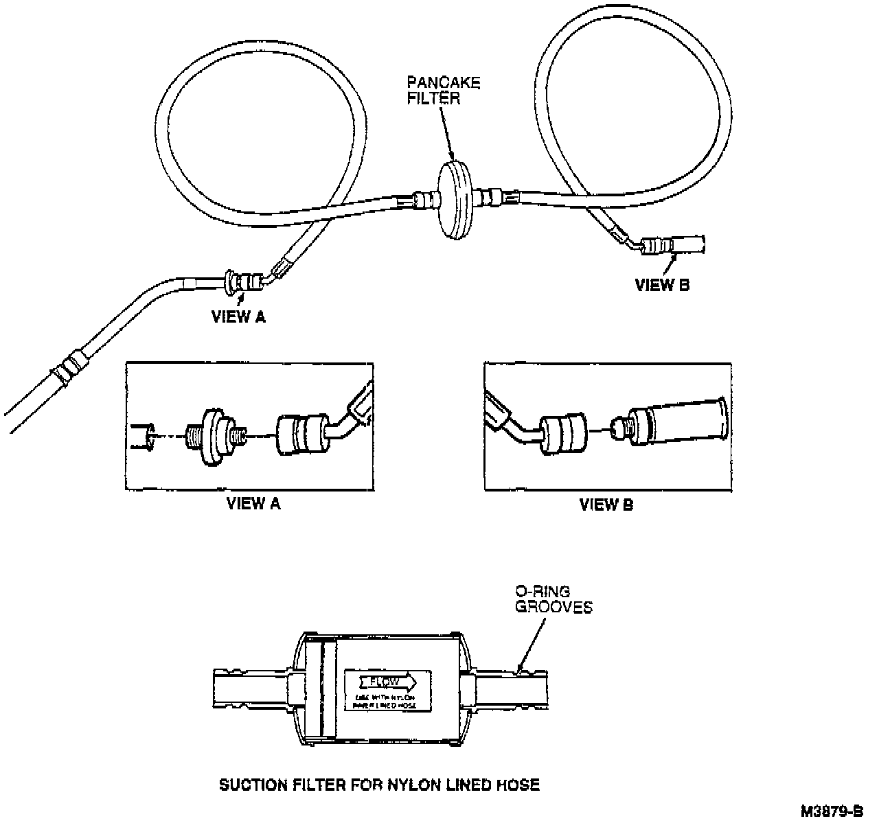 9. Install the suction filter in the suction hose close to the compressor. These filters have two grooves in the end tubes to accommodate 0-ring seals.