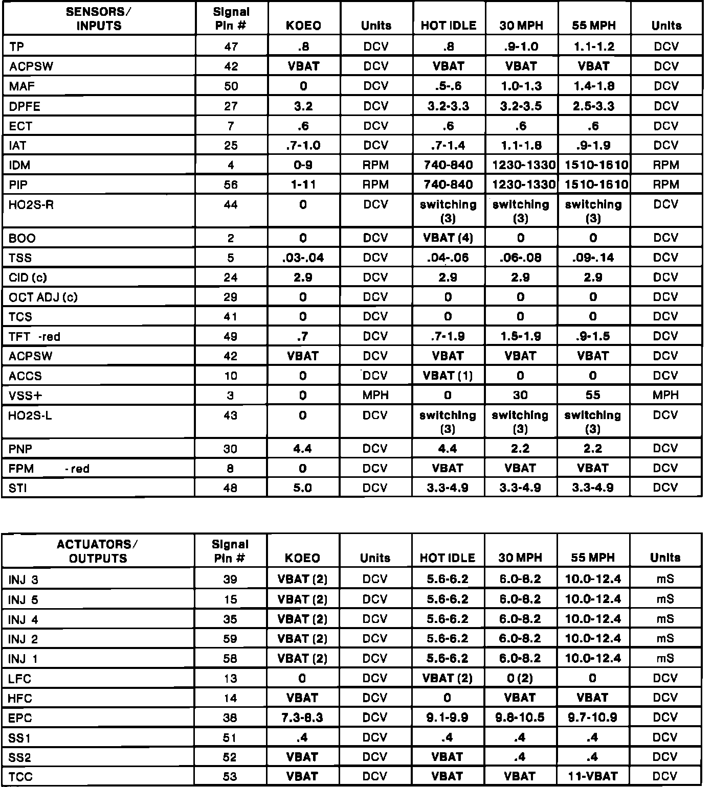 Home >> Ford >> 1994 >> Thunderbird V6-232 3.8L >> Repair and Diagnosis >> Powertrain Management >> Computers and Control Systems >> Testing and Inspection >> Scan Tool Testing and Procedures >> Typical Diagnostic Reference Values