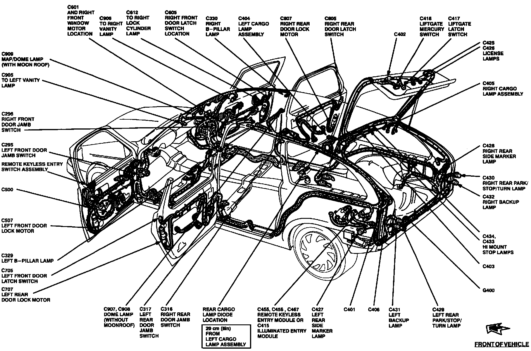 The Remote Keyless Entry Module is located in rear LH rear quarter panel, behind the wheel well.