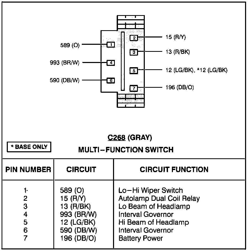 Home >> Ford >> 1995 >> Taurus V6-232 3.8L >> Repair and Diagnosis >> Diagrams >> Connector Views >> Combination Switch >> Multi-Function Switch Connector Views