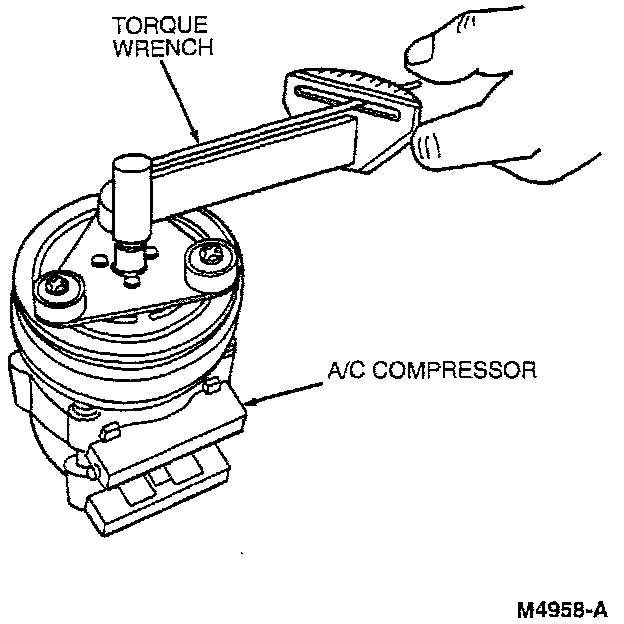 ROTATING TORQUE CHECKThe rotational torque of a used A/C compressor should be checked if excessive drag is suspected.
