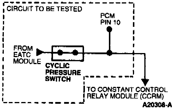 - Disconnect and inspect the cyclic pressure switch connector and the EATC module connector.