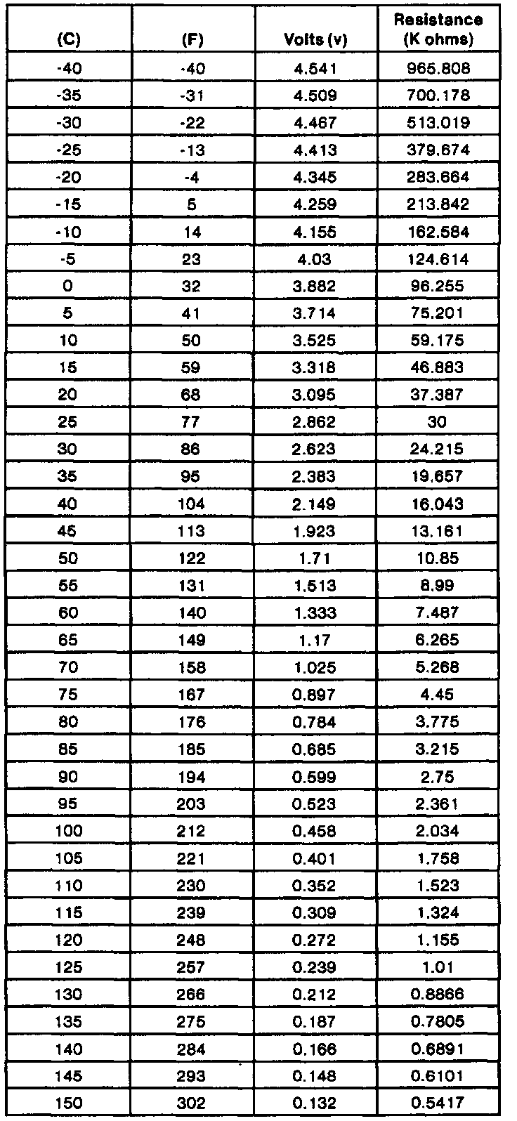 TEMPERATURE/VOLTAGE/RESISTANCE TABLE