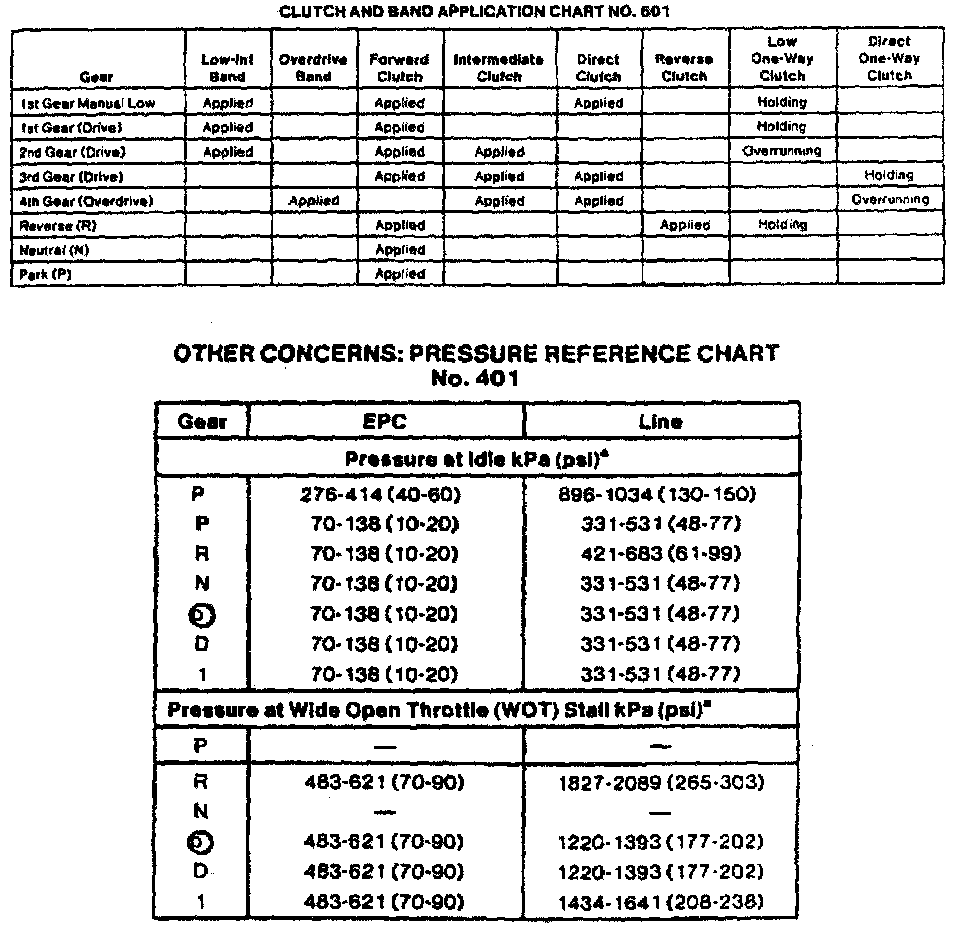 AX4S 4-spd A/T, Clutch/Band Application (Taurus/Sable):