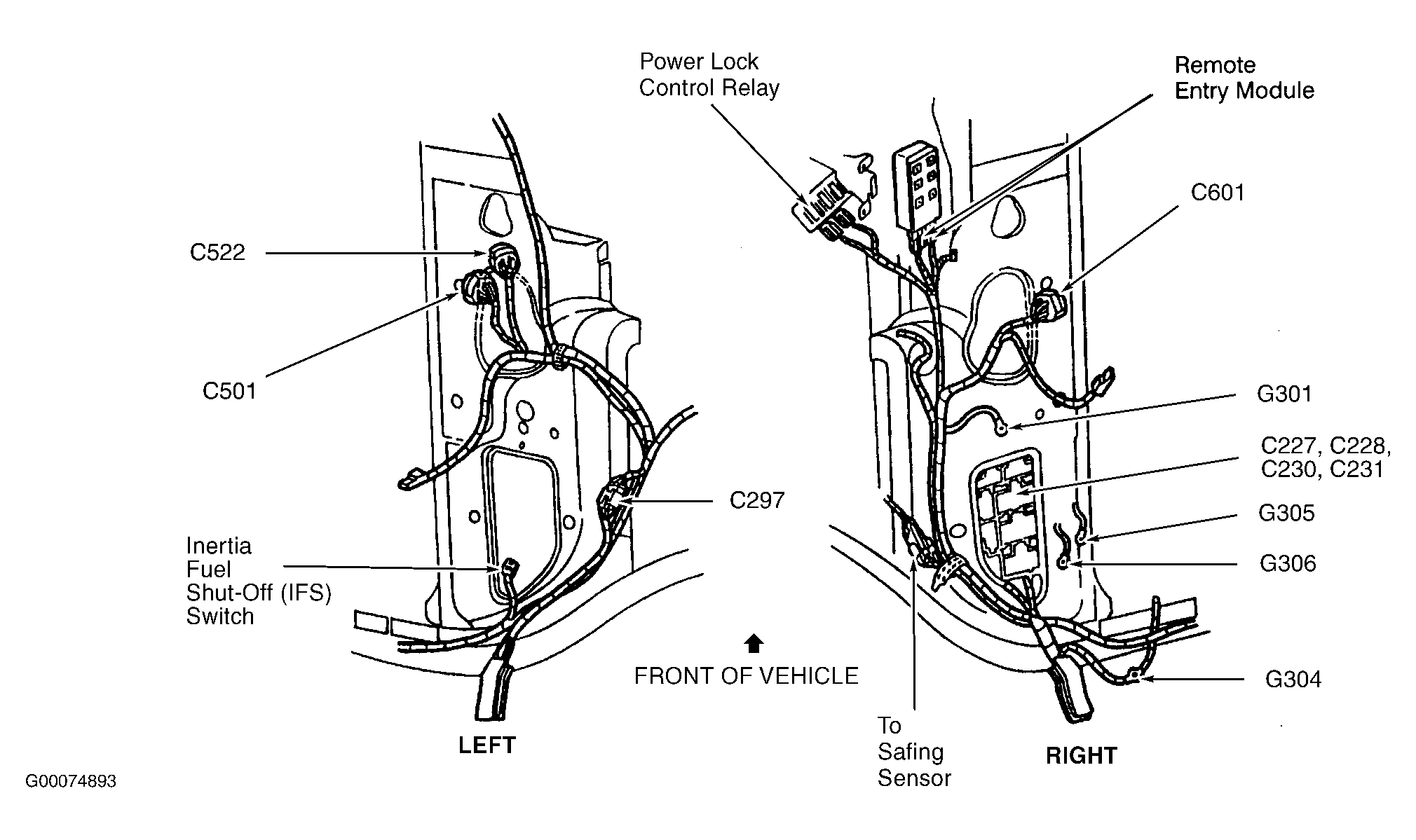Fuel Pump Module Under center of rear seat. See Figure .