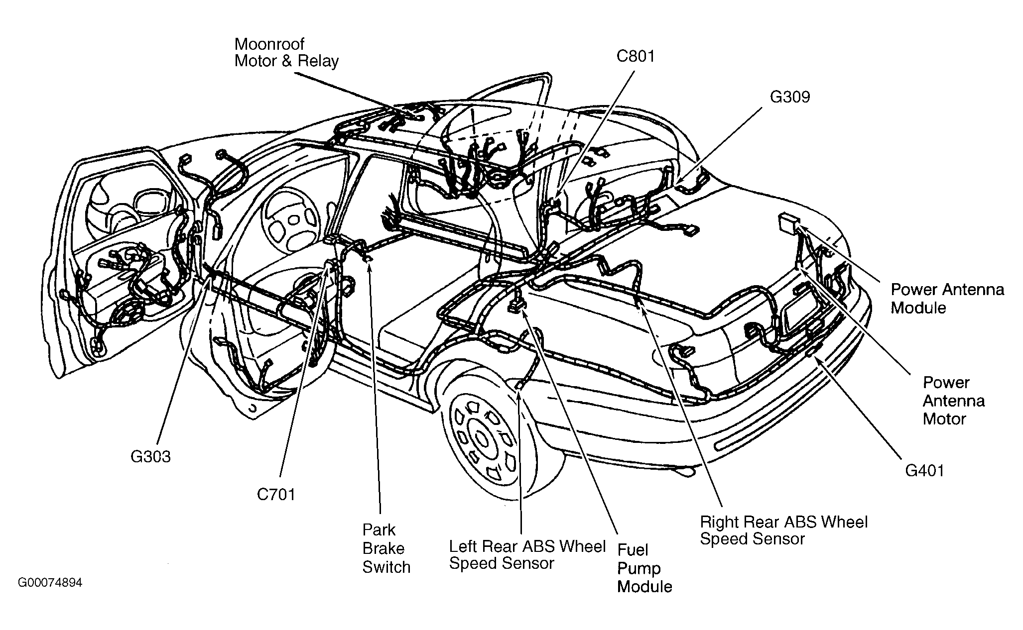 Power Antenna Module In right rear luggage compartment, behind panel. See Figure .
