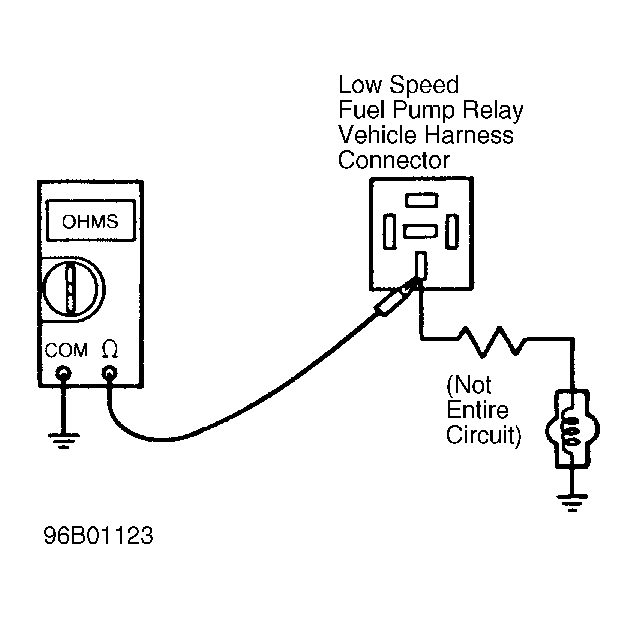 Replace low speed fuel pump relay if resistance is not 10,000 ohms. If resistance is okay, go to next step.