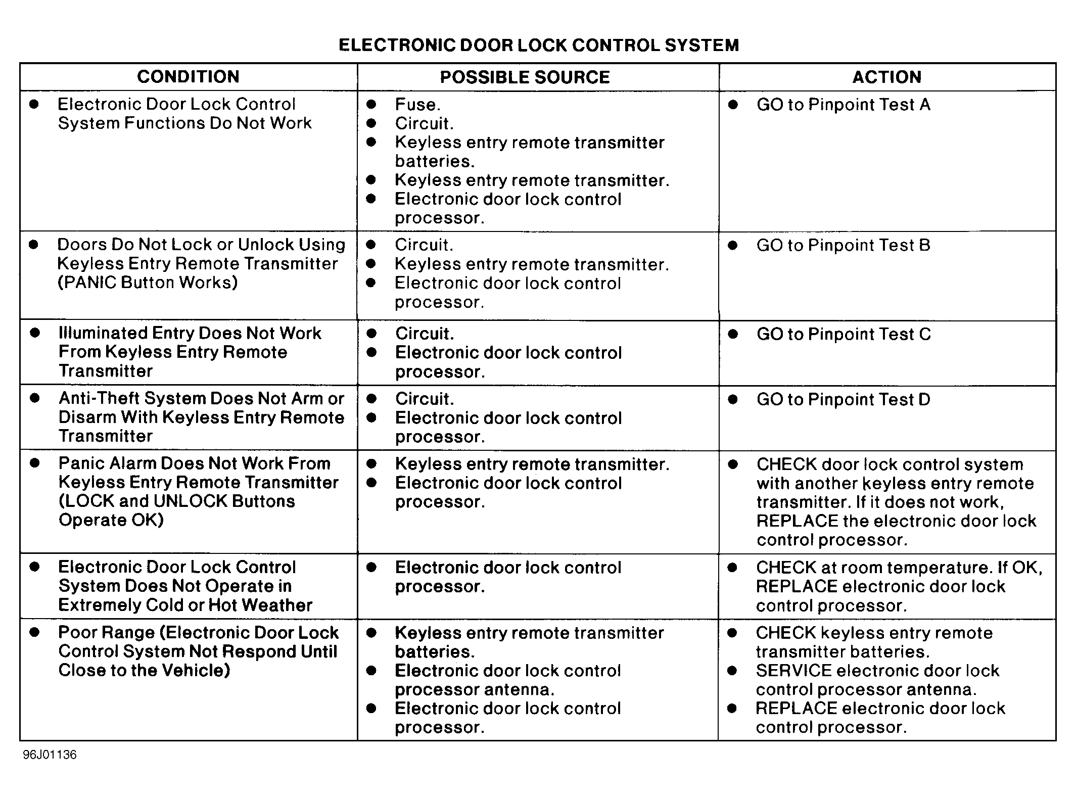 Pinpoint Test A - Door Lock System Does Not Operate