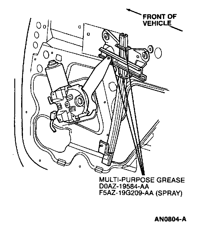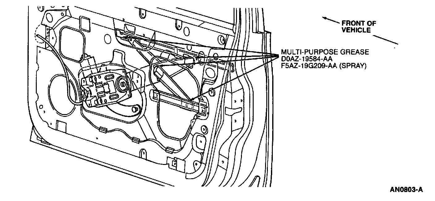 Front Door Window Regulator Lubrication Points: