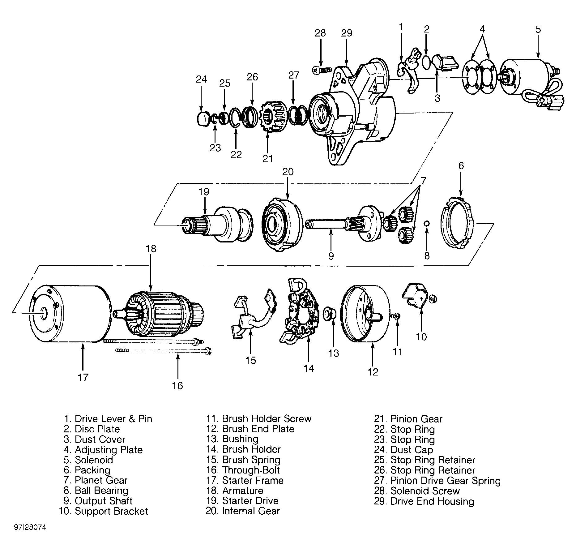Connect battery, voltmeter, ammeter, and remote starter switch to starter. See Fig 1 . Engage remote starter switch. Starter should turn smoothly. Voltmeter should indicate 11 volts or more, and ammeter should indicate no more than 70 amps. If voltage is lower or current is higher than specification, disassemble starter and determine cause. See Figure or Figure .