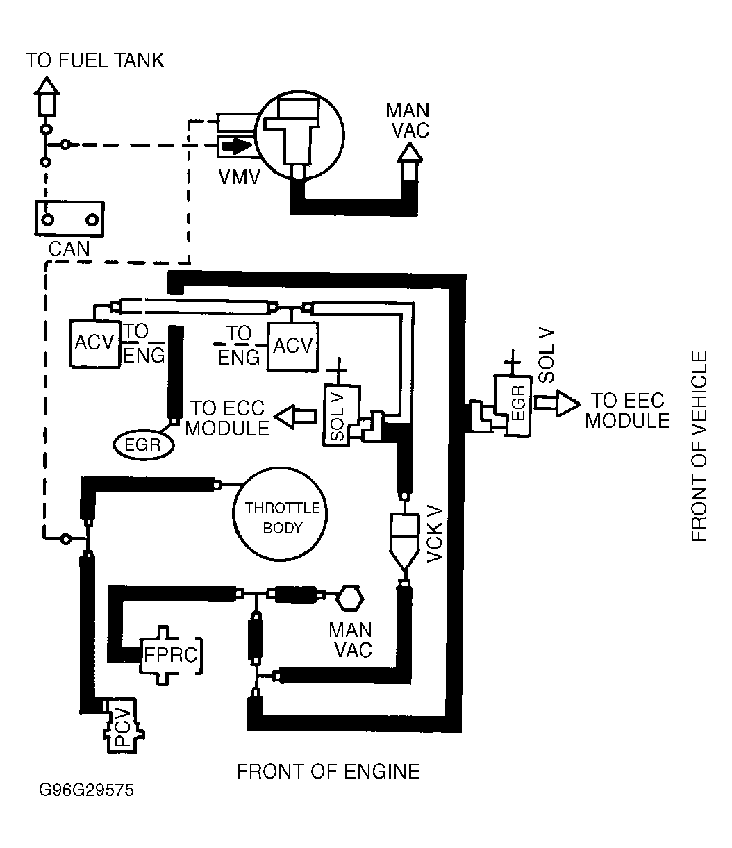 Vacuum diagrams are identified by calibration code. Use the Emission Calibration Label to identify calibration. Calibration label is attached to left door or left door pillar. See Fig 1 . Use calibration code to select vacuum diagram.