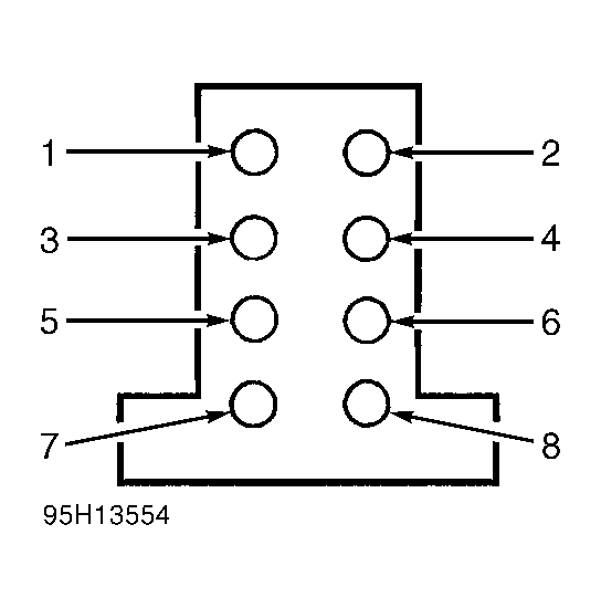8. Disconnect driver's door module 16-pin connector. See DRIVER DOOR MODULE  under REMOVAL & INSTALLATION. Disconnect keypad connector. See KEYPAD  under REMOVAL & INSTALLATION. Using button values that did not register in step 5), connect jumper wire between appropriate wire terminals at keypad connector. See ACTIVE NUMBER OPEN CHECK TABLE. See Fig 1 . Using button values that did not register in step 5), measure voltage between ground and appropriate wire terminal at DDM 16-pin connector. See VOLTMETER CONNECTIONS TABLE. If battery voltage is present, go to next step. If battery voltage is not present, repair open in suspect circuit(s), then retest system.