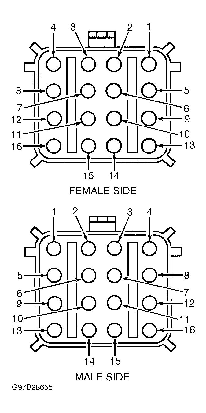 9. Inspect ABS control module pins. If pins are okay, replace ABS control module. If pin(s) are damaged, repair as necessary. Reconnect connectors. Repeat DATA LINK DIAGNOSTICS  under COMMUNICATION NETWORK DIAGNOSTICS.