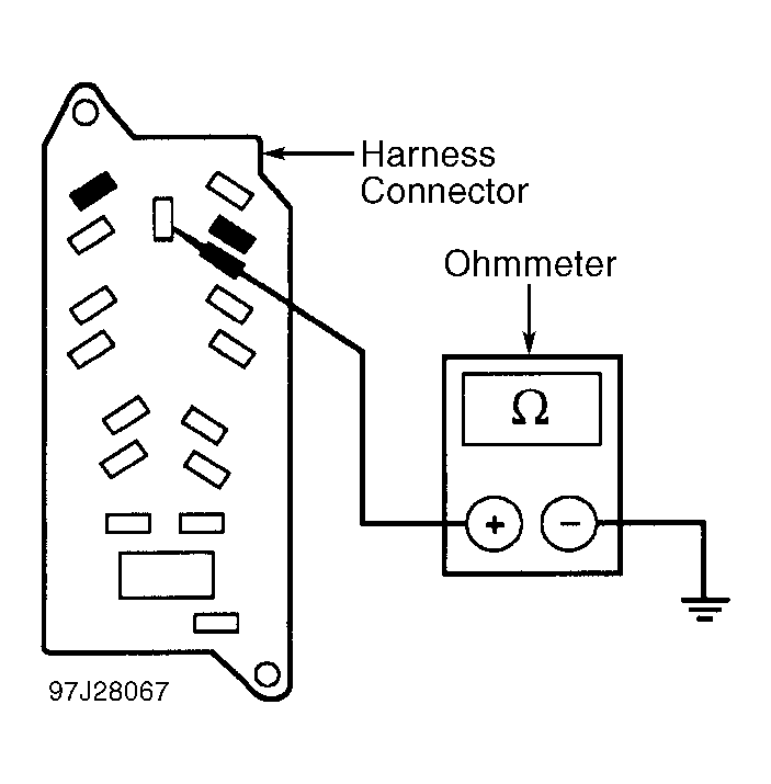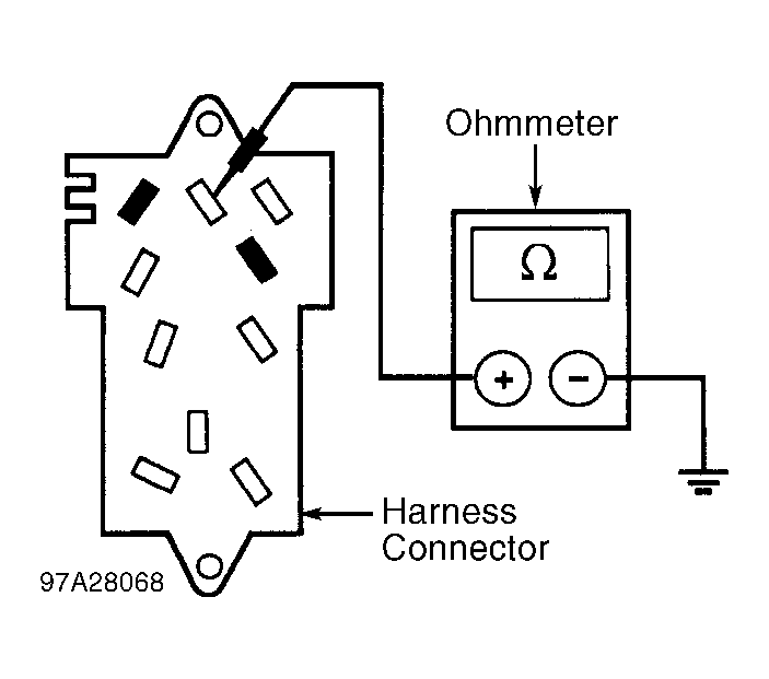 - Measure resistance between ground and master window/door lock switch harness connector Black wire. See Fig 1 . Resistance should be less than 5 ohms. If resistance is less than 5 ohms, repair Blue or Gray wire between master window/door lock switch harness connector and door lock relay connector. See WIRING DIAGRAM . If resistance is not less than 5 ohms, repair Black wire between master window/door lock switch harness connector and ground.