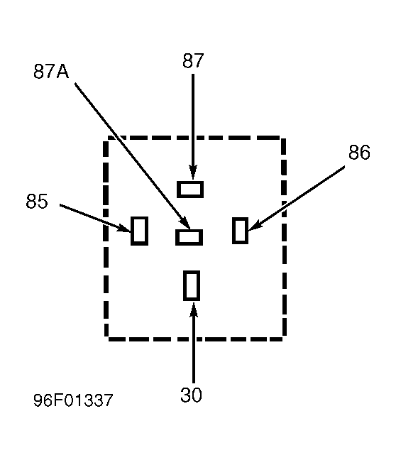 Disconnect GEM from fuse junction panel. Remove one-touch relay from fuse junction panel. Measure resistance between one-touch relay socket terminal No. 85 and ground. See Figure. If resistance is less than 10 k/ohms, replace fuse junction panel. If resistance is greater than 10 k/ohms, replace GEM and retest system.