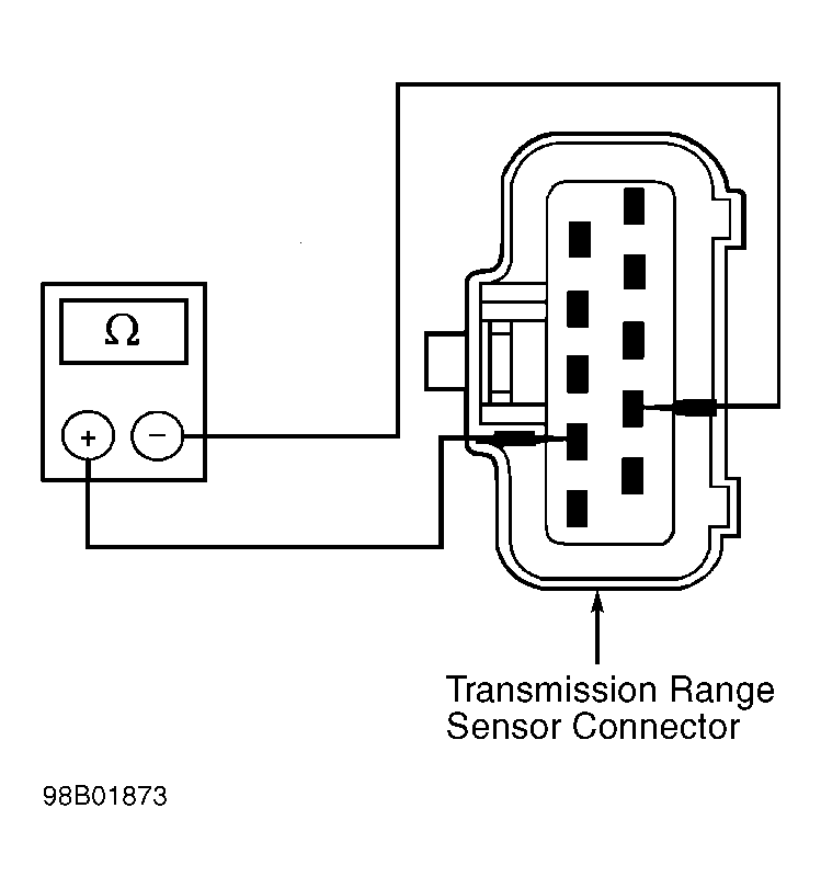 Measure resistance between Transmission Range (TR) Sensor harness connector terminals No. 9 and 14 while transmission selector is in Park or Neutral. See Fig 4 . If resistance is less than 5 ohms, go to next step. If resistance is greater than 5 ohms, replace TR sensor. Restore electrical connections and check system operation.