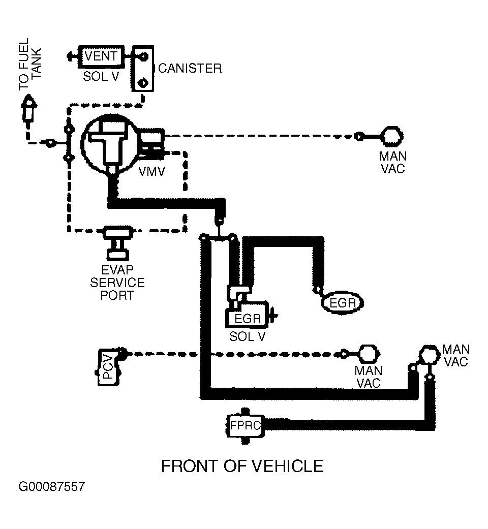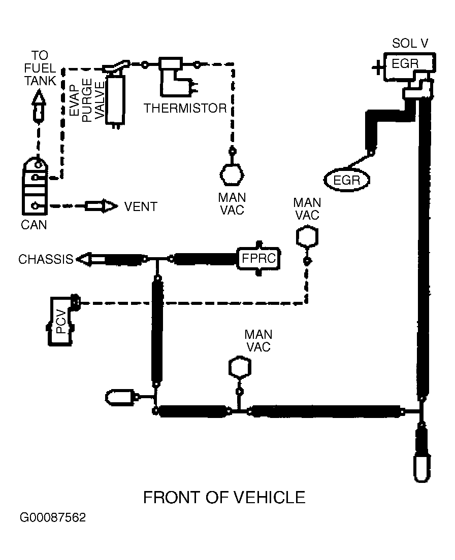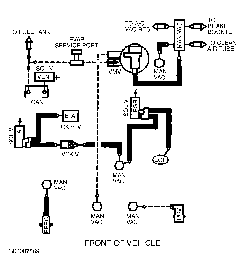 Fig 6: Vacuum Diagram (Contour & Mystique - 2.5L - California CARB Tier 1, Canada & 49-States - Except Calibration Nos. 9-LCA-AAD (MJJ3) - Code DZU & 9-LCM-AAC (KKT2) - Code DZU)