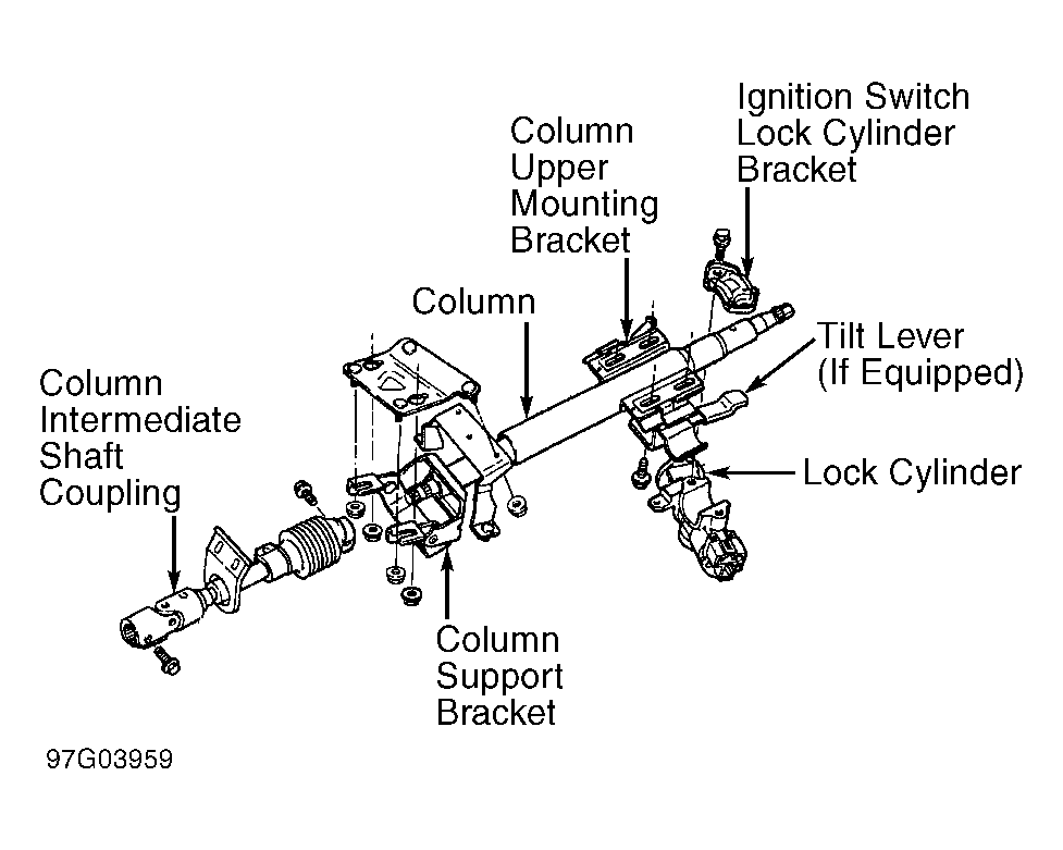 1. Disconnect negative battery cable. Disconnect positive battery cable. Disable air bag system (if equipped). See DISABLING & ACTIVATING AIR BAG SYSTEM  . Remove lower shroud. See Figure . Remove mounting nuts and bolts from steering column mounting bracket. Lower column until ignition switch retaining screws are accessible.