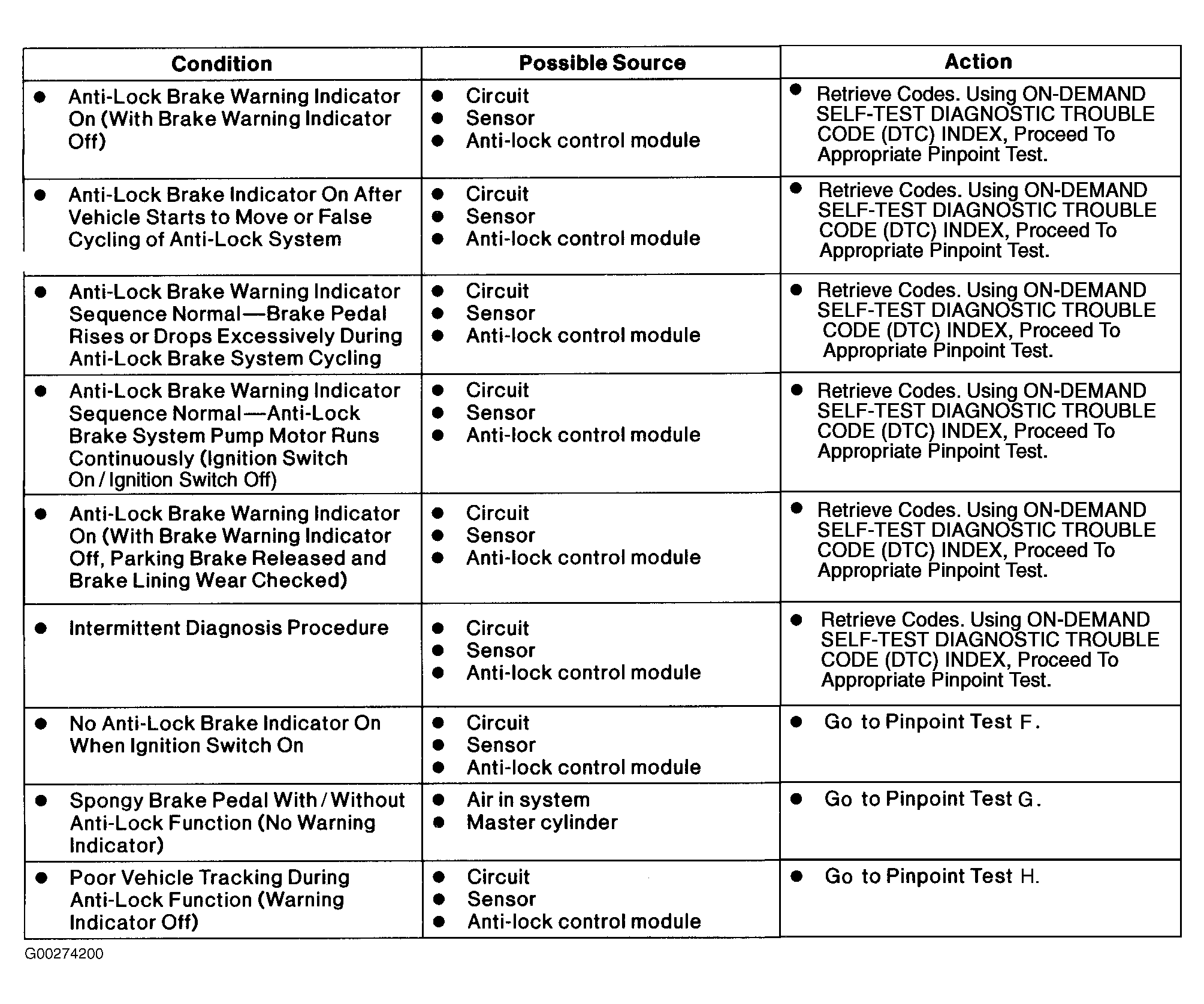 When trouble shooting ABS system, use test procedures in order they are presented. Using other than recommended procedure could result in wasted time and/or unnecessary replacement of parts.